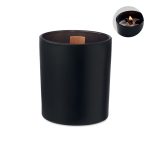 Dišeča sveča iz rastlinskega voska, z vonjem vanilije, 200 g, v steklenem kozarcu z lesenim stenjem in kamenčki. Čas gorenja: 20 ur.