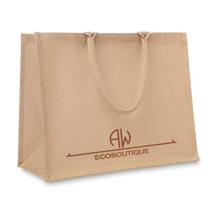 Kakovostna nakupovalna torba iz jute. Možnost tiska večbarvnih logotipov večjih formatov.