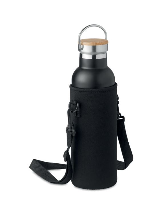 Termo steklenica iz nerjavečega jekla, 700 ml, z nastavkom za pitje in dodatnim pokrovčkom, v torbici iz neoprena. Pakirana v darilno embalažo.